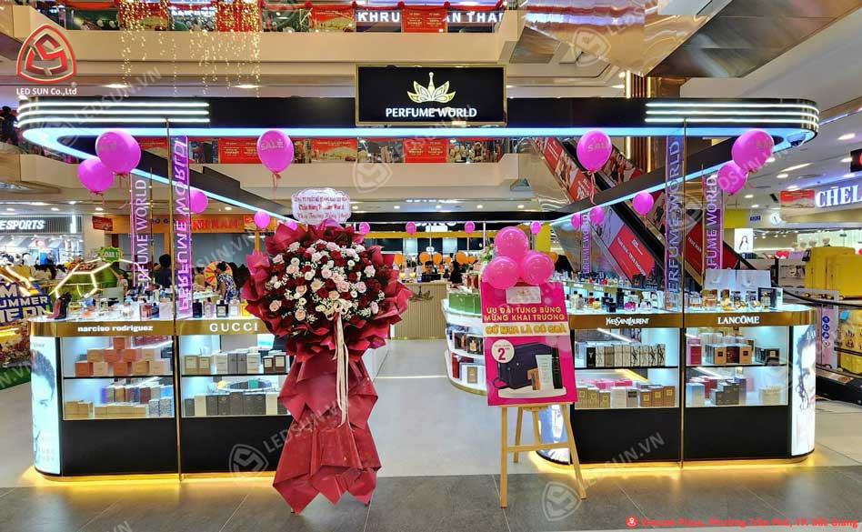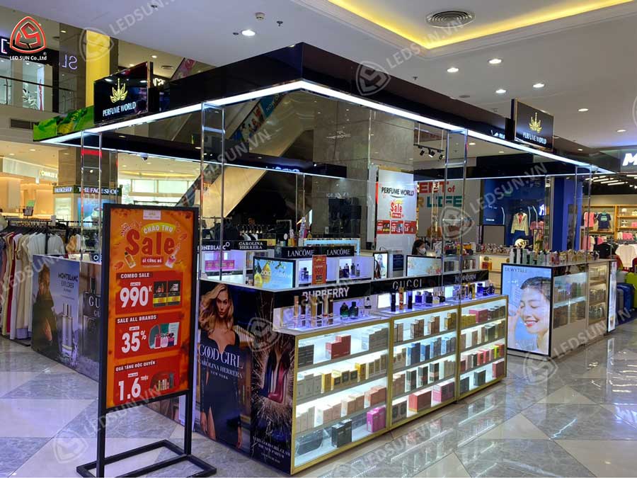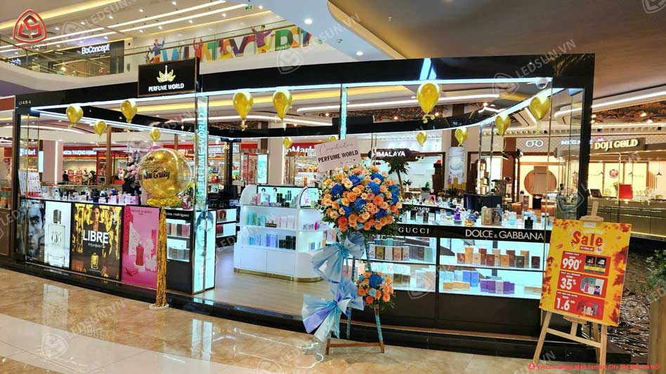 Led Sun đã thực hiện dự án thiết kế và thi công hệ thống gian hàng Perfume World trên toàn quốc, với mục tiêu mang đến không gian mua sắm sang trọng và cuốn hút. Dựa trên sự sáng tạo và kinh nghiệm, chúng tôi đã hoàn thiện các gian hàng với thiết kế hiện đại, tối ưu hóa công năng trưng bày sản phẩm, đồng thời đảm bảo sự nhận diện thương hiệu nhất quán. Kết quả là hệ thống gian hàng Perfume World không chỉ thu hút khách hàng mà còn nâng cao trải nghiệm mua sắm, góp phần khẳng định vị thế của thương hiệu trên thị trường.