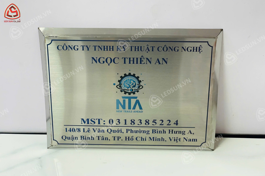 Led Sun là đơn vị chuyên làm bảng tên công ty inox trắng xước uy tín tại TP. Hồ Chí Minh, được nhiều công ty tin tưởng và lựa chọn. Chúng tôi sử dụng inox 304 chất lượng cao, gia công tỉ mỉ đến từng chi tiết, đảm bảo bảng tên luôn sắc nét, bền đẹp và mang đậm dấu ấn thương hiệu. Với đội ngũ thợ lành nghề, máy móc hiện đại và quy trình làm việc chuyên nghiệp, Led Sun cam kết mang đến sản phẩm chuẩn thiết kế, thi công đúng tiến độ và giá thành hợp lý. Đặc biệt, chúng tôi luôn hỗ trợ tư vấn mẫu mã, kích thước phù hợp với không gian và phong cách doanh nghiệp. Uy tín tạo nên thương hiệu – Led Sun đồng hành cùng hình ảnh chuyên nghiệp của bạn.