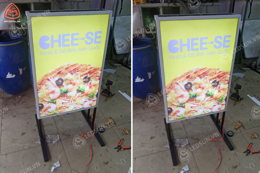 Khung hộp và chân đỡ: Thường làm từ sắt sơn tĩnh điện hoặc inox, giúp hộp đèn đứng vững, chống gió và chịu lực tốt khi đặt ngoài trời.