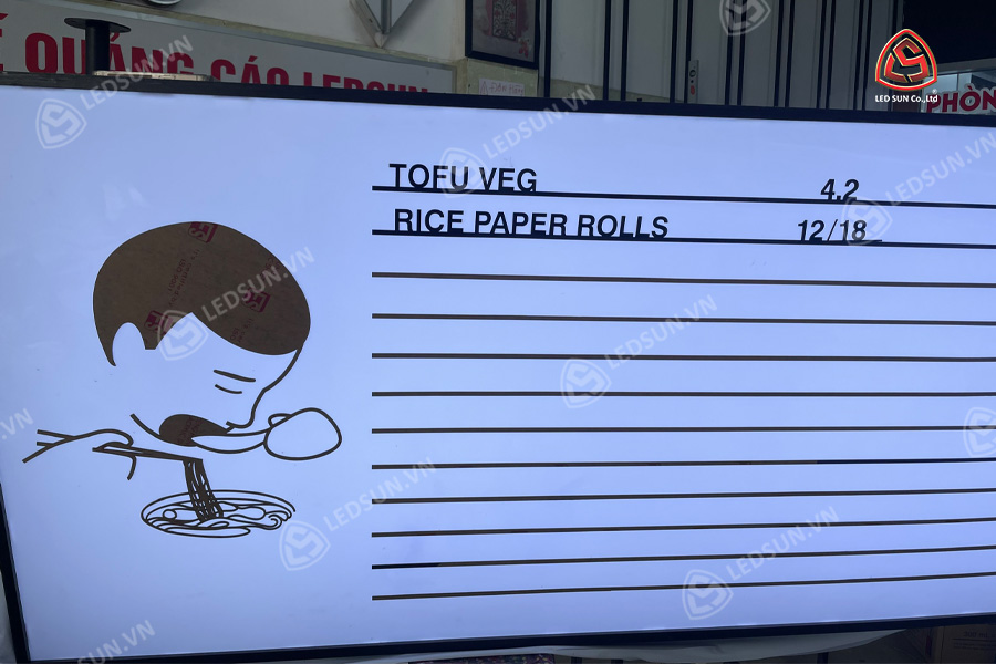 - Hộp đèn menu treo tường hoặc để bàn trong nhà hàng, tiệm bánh, quán trà sữa.