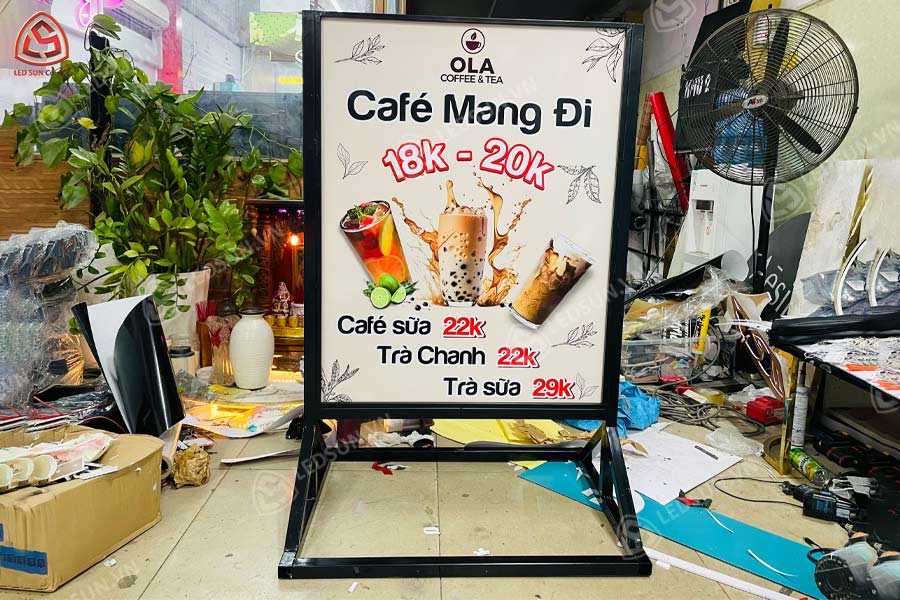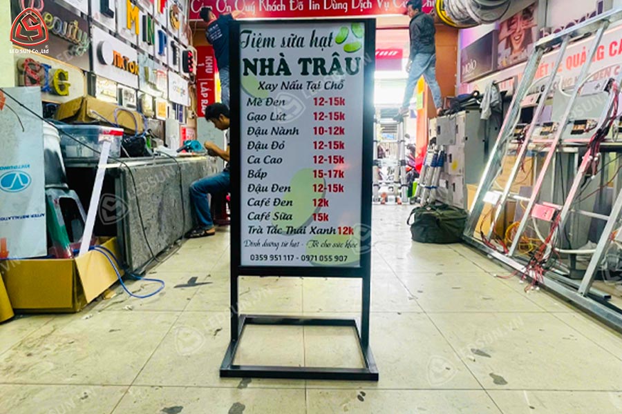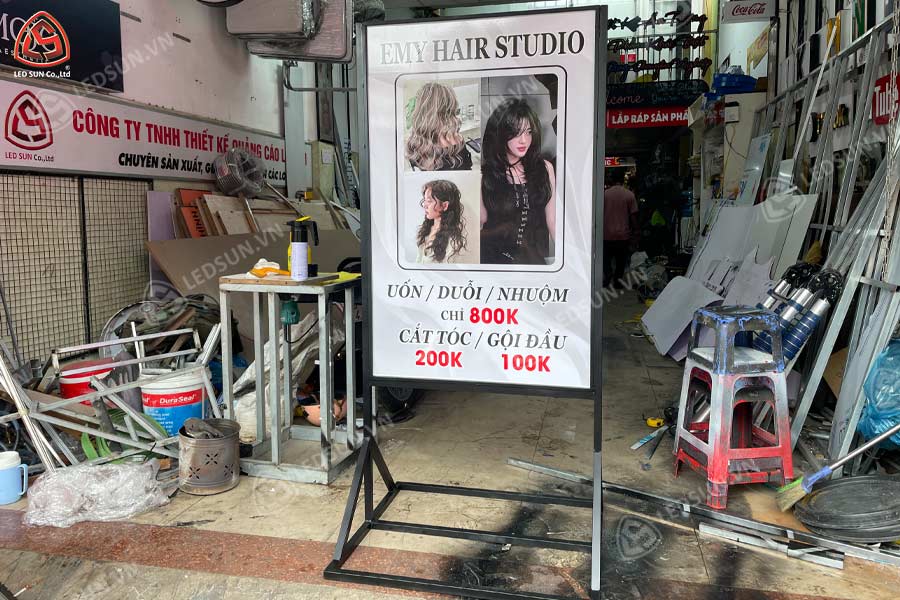 Standee dán decal 2 mặt là bảng quảng cáo sử dụng chất liệu alu bền bỉ, được dán decal hiển thị nội dung trên cả hai mặt. Với khung chân chắc chắn, loại standee này phù hợp dùng trong nhà và ngoài trời, giúp tối ưu hóa khả năng quảng bá từ nhiều góc nhìn. Standee alu dán decal 2 mặt thường được sử dụng để quảng cáo sự kiện, trưng bày sản phẩm, hoặc làm bảng chỉ dẫn, mang lại tính thẩm mỹ và hiệu quả cao.